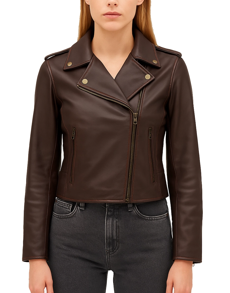 Biker Dark Brown Leather Jacket For Women